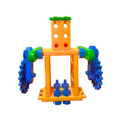 STEM Innovators use the construction kit to help problem-solve the challenges in the Grade Pre-K book. All these projects reinforce the NGSS and Cambridge objectives. The kit introduces the learners to the earliest industrial revolution where the learners use gears, wheels, rods, nails and nuts to structure different solutions based on their design thinking and creativity.